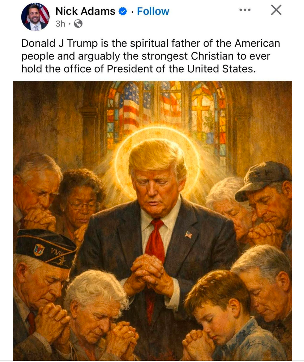 Det er hysterisk morsomt at de alltid tyr til KI-bilder av Trump i kirken eller i bønn - ganske enkelt fordi han verken er kristen eller kirkegjenger